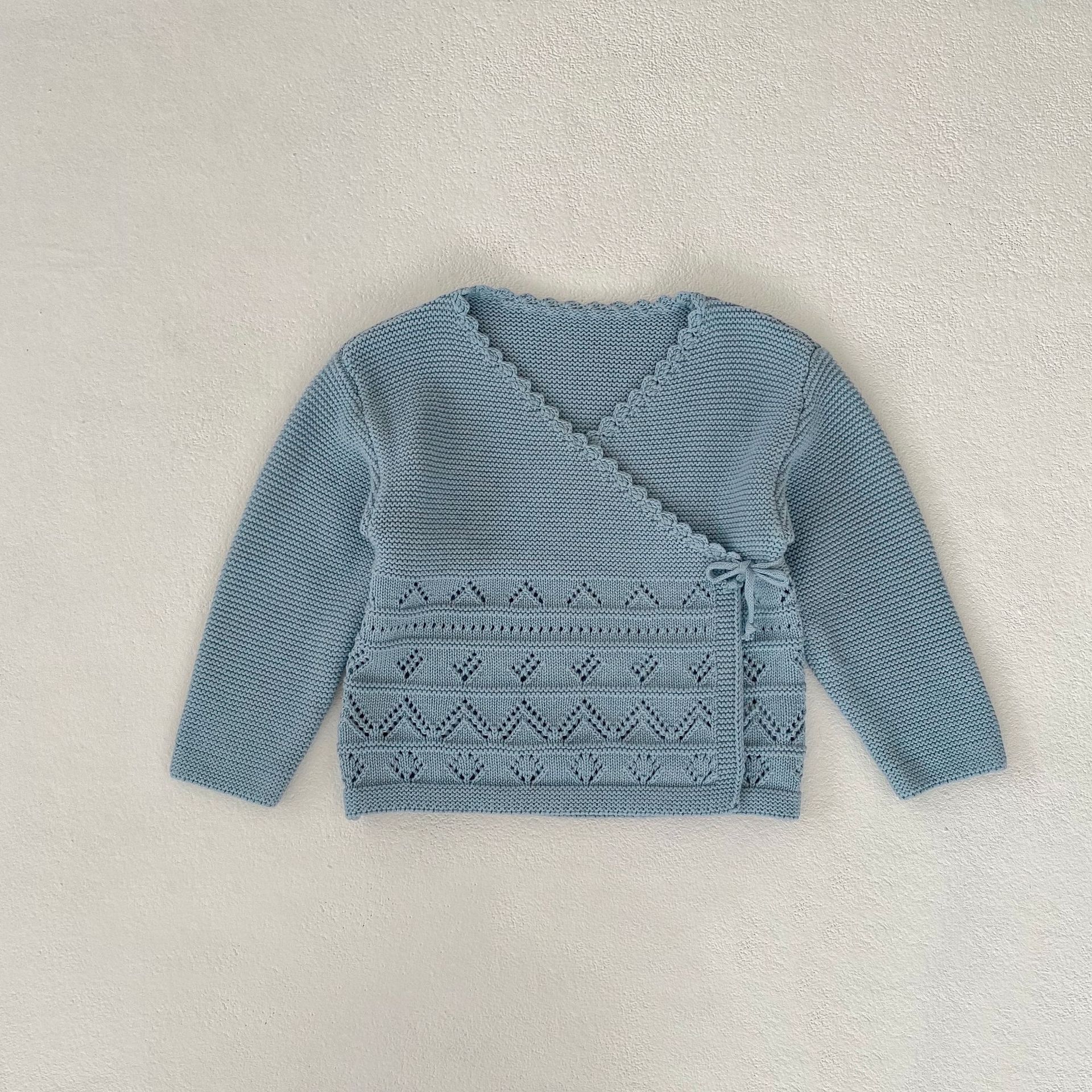 Ropa de otoño 2024 para bebés y niños pequeños, chaqueta gris azul con cuello cruzado y tapeta delantera, pantalones cortos atados y