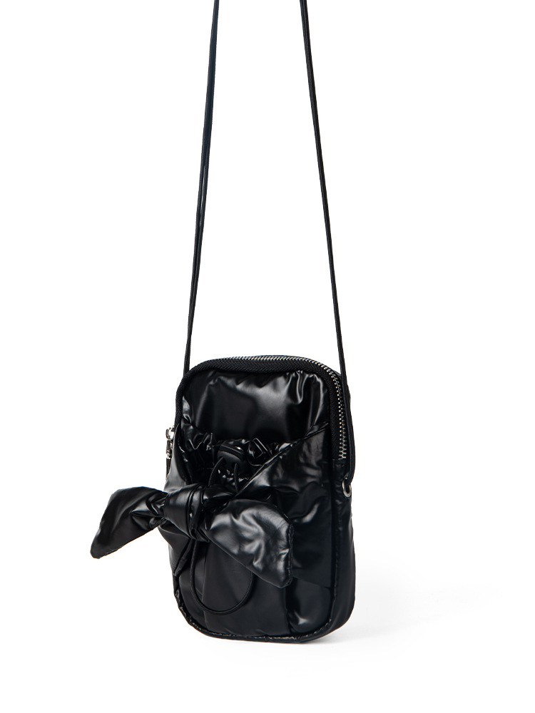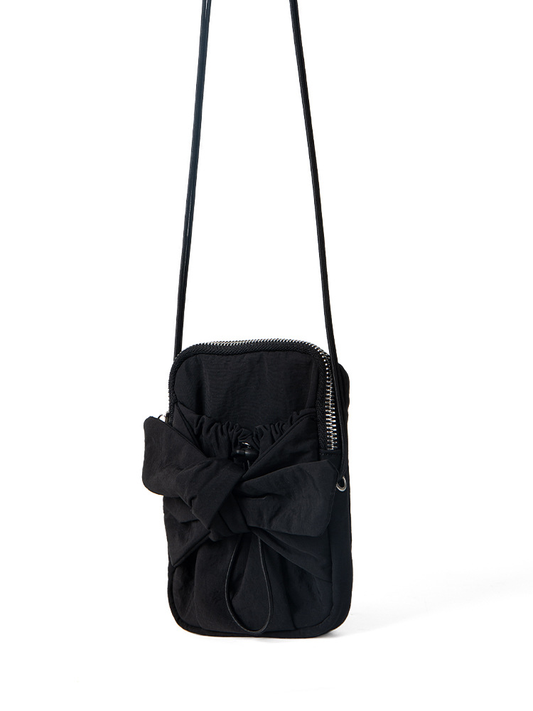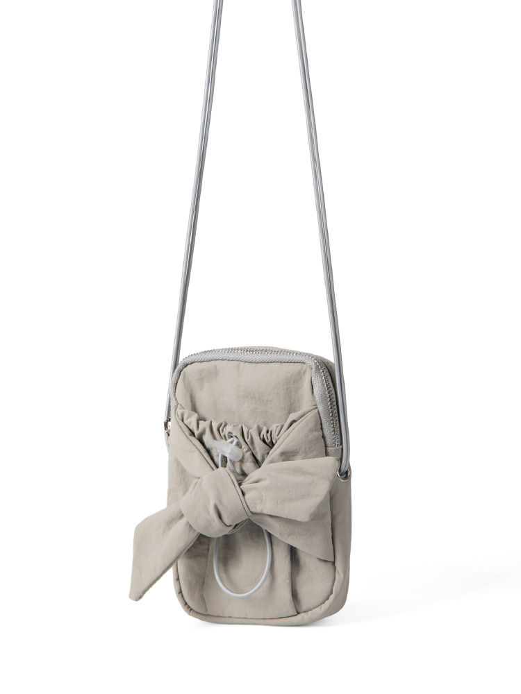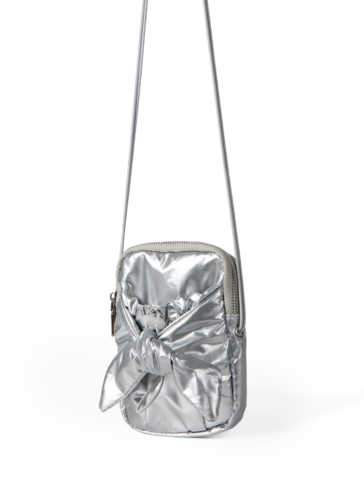 2024 new Korean niche design silver bow and silver crossbody bag for women with drawstring drawstring drawstring mouth, single shoulder small square bag