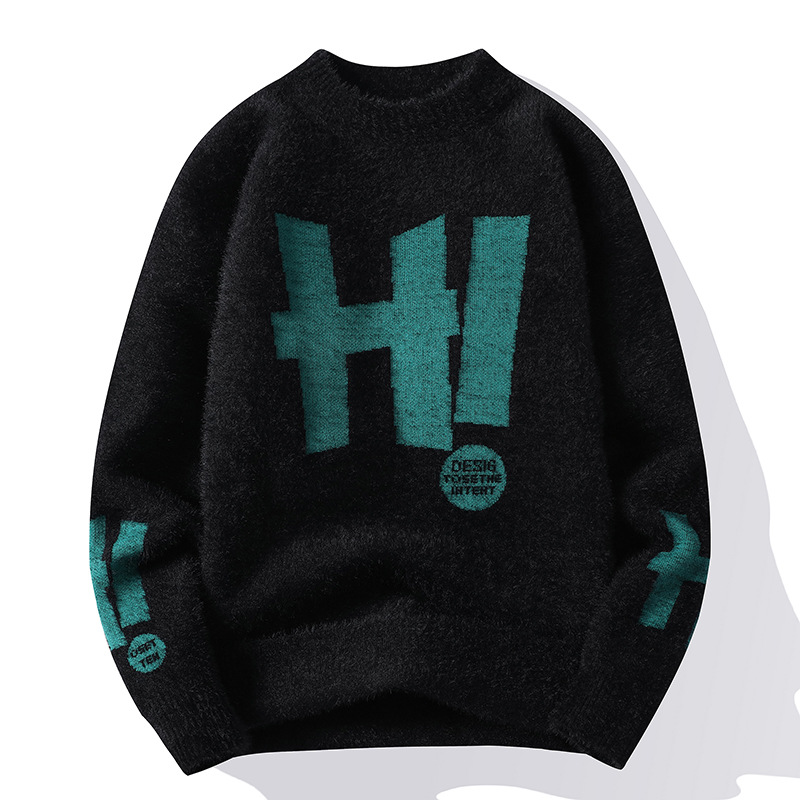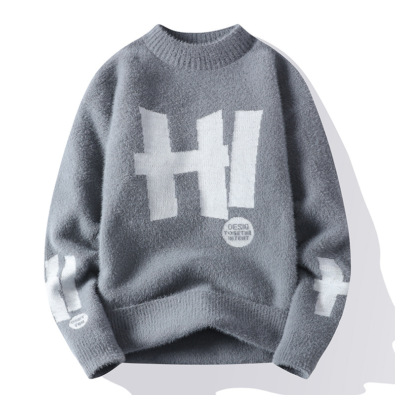 2024 new men's pullover knitted sweater, men's new thick and warm mink fur sweater