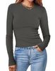 Camiseta de manga larga con cuello redondo para mujer, blusa corta de color liso, primavera 2025