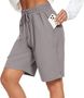 FAYLR Women's Bermuda Shorts Knee-Length Elastic Waist Drawstring Workout Basketball Sports Long Shorts with