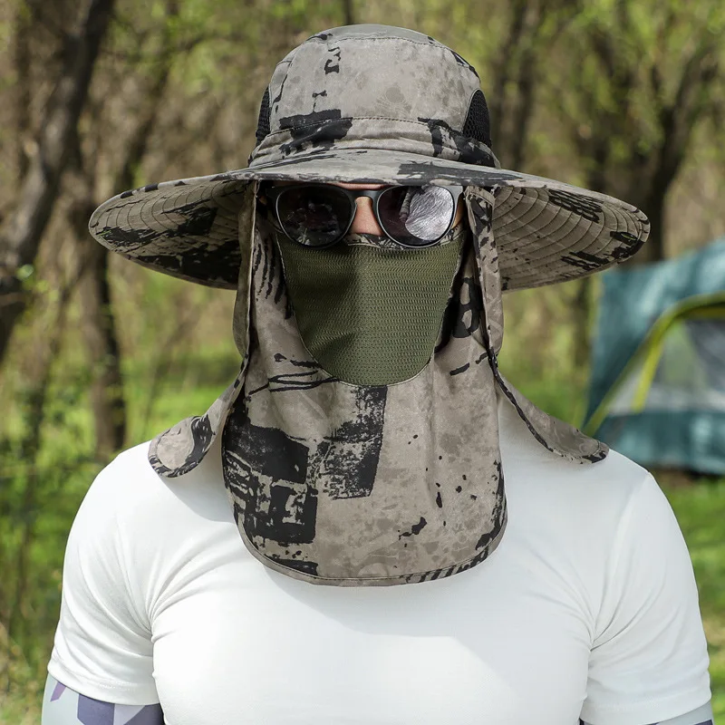 Juego de 3 cubos para hombre con velo tipo chal, camuflaje, para verano, antiarena, 12 cm, sombrero militar impermeable para el sol, para acampar al aire libre y pescar.