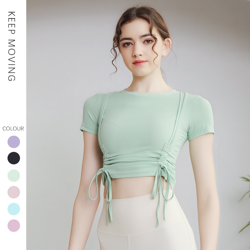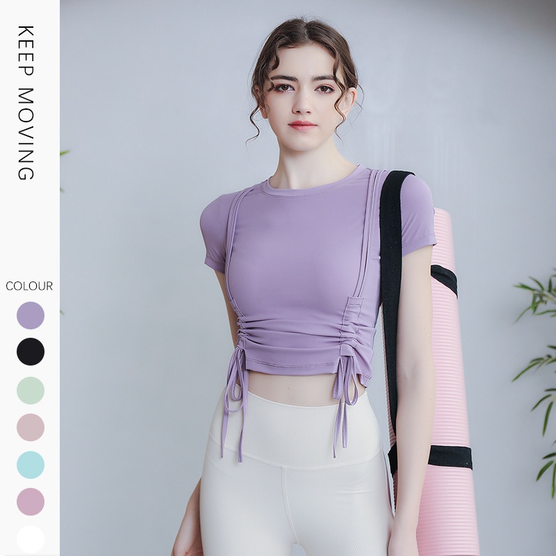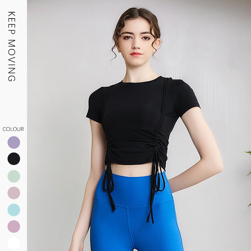 ActiveGo Lulu Outdoor - Camiseta deportiva de manga corta para yoga, con cordón, adelgazante, secado rápido, para pilates y fitness