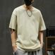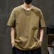 Camiseta de manga corta con cuello vuelto y mangas cortas lavadas de estilo americano para hombre, marca de moda, color sólido, 260 g, con hombros descubiertos, se puede imprimir con