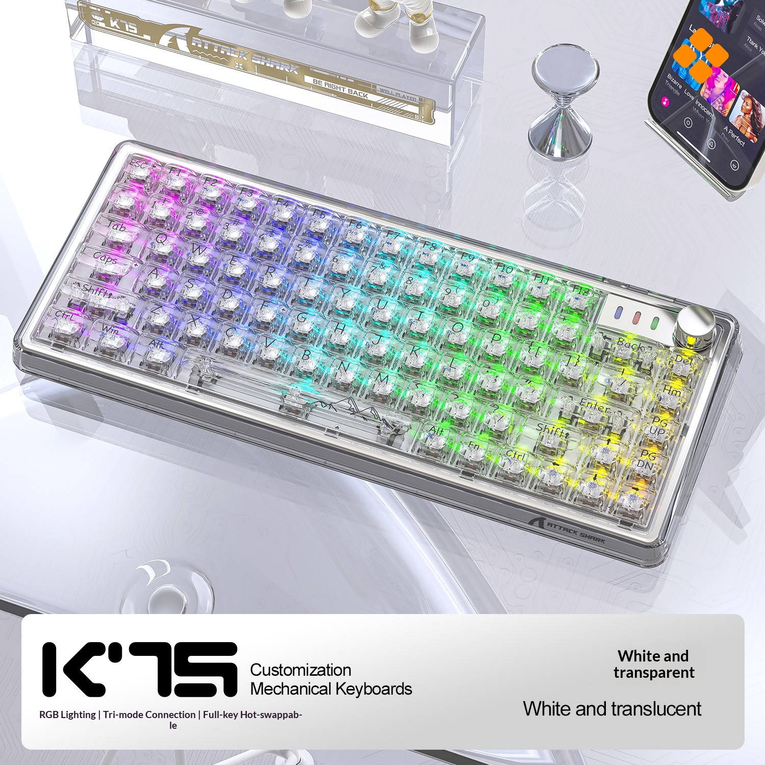 Teclado mecánico inalámbrico Bluetooth Attack Shark K75RGB con junta transparente e intercambiable en caliente