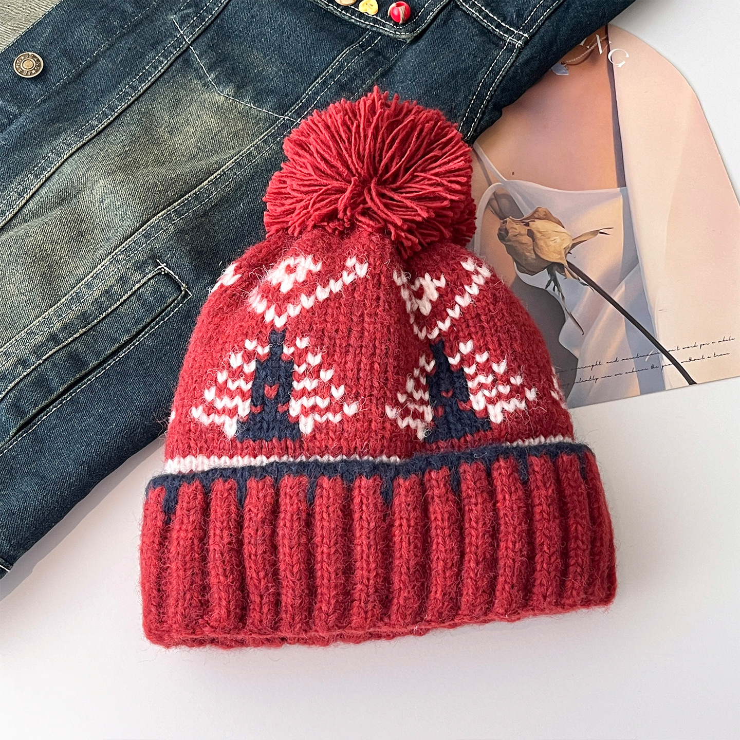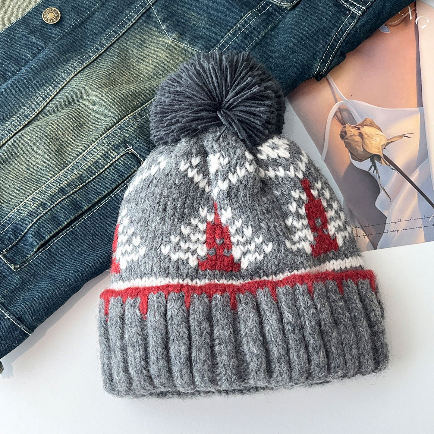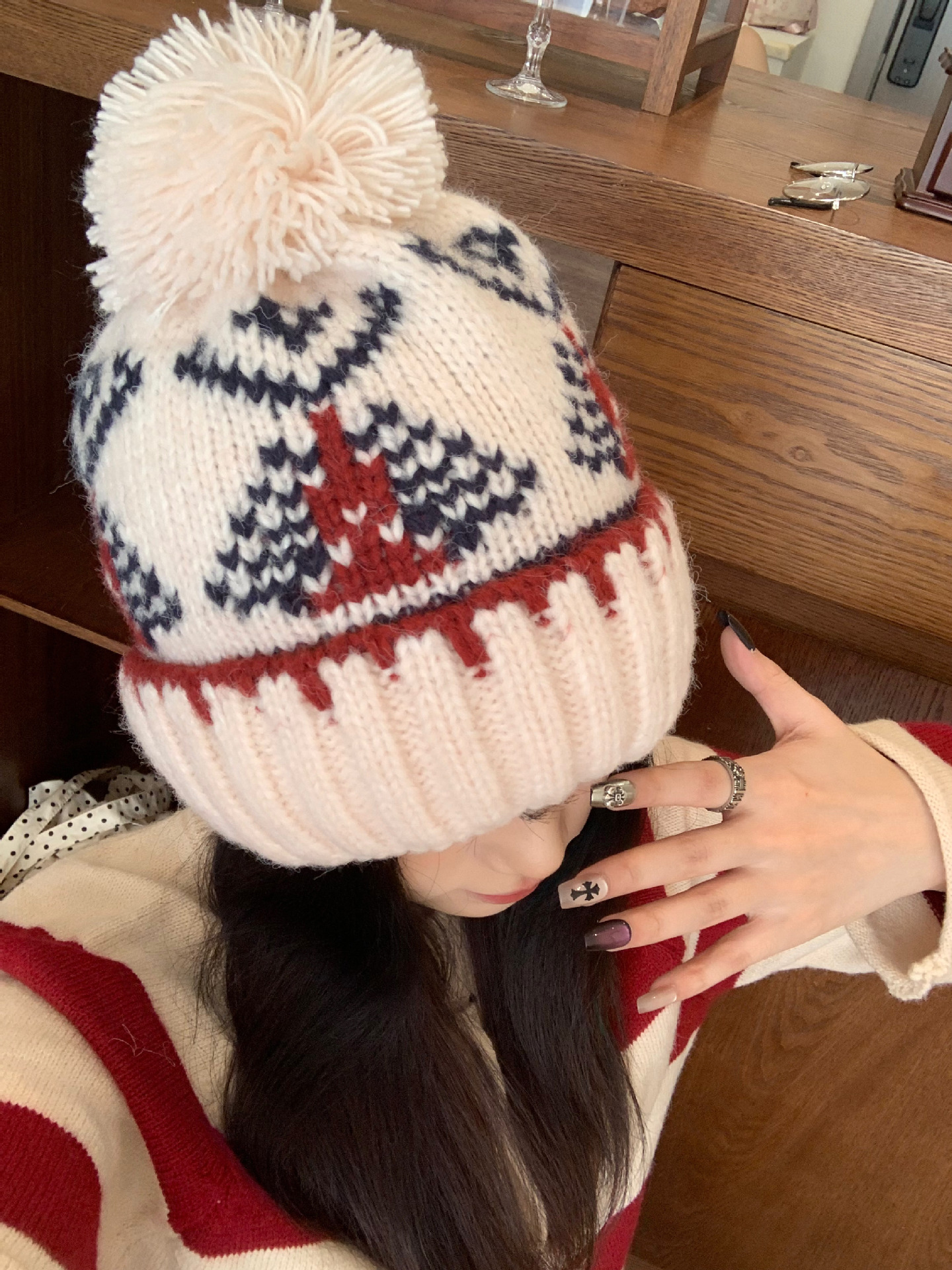 Autumn Winter Korean Retro Jacquard Knitted Hat for Women Winter Fair Isle Style Ear Protection Warm Pom Pom Knitted Pullover Hat