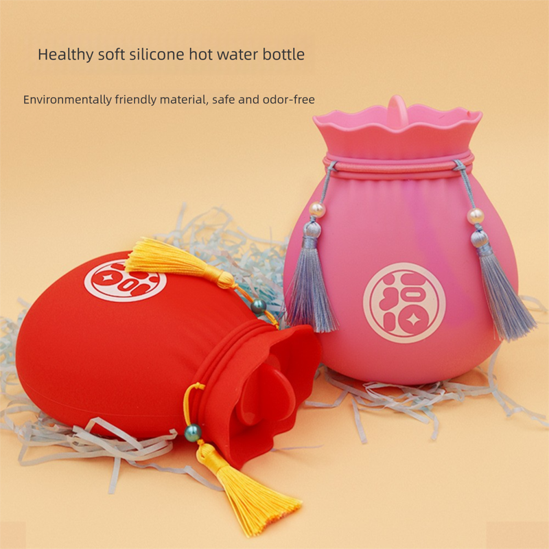 Water-Filled Hot Water Bottle Chinese Style Lucky Bag Portable Warm Explosion-Proof New Year Gift Silicone Hot Water Bag