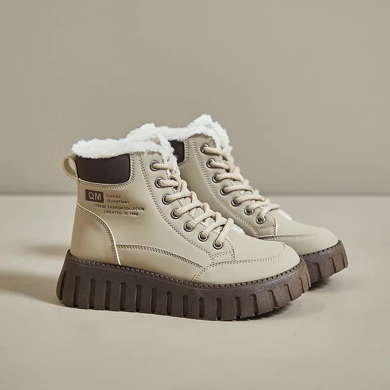 Step into Winter Warmth and Style: Faux Fur - Lined Lace - Up Slippers