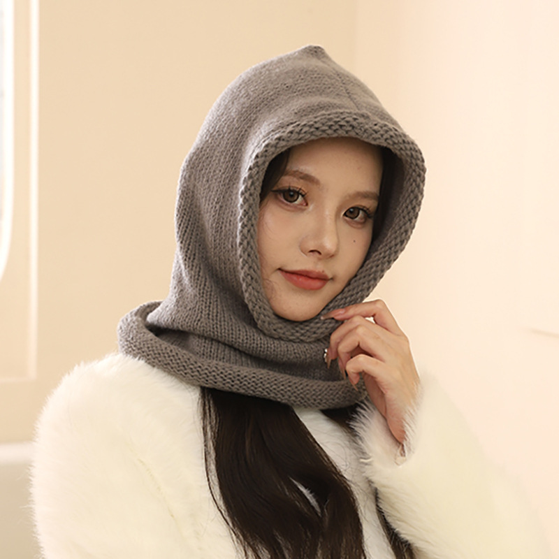 Bufanda de otoño e invierno, gorro pasamontañas de punto con hilo integrado, gorro frío grueso y cálido
