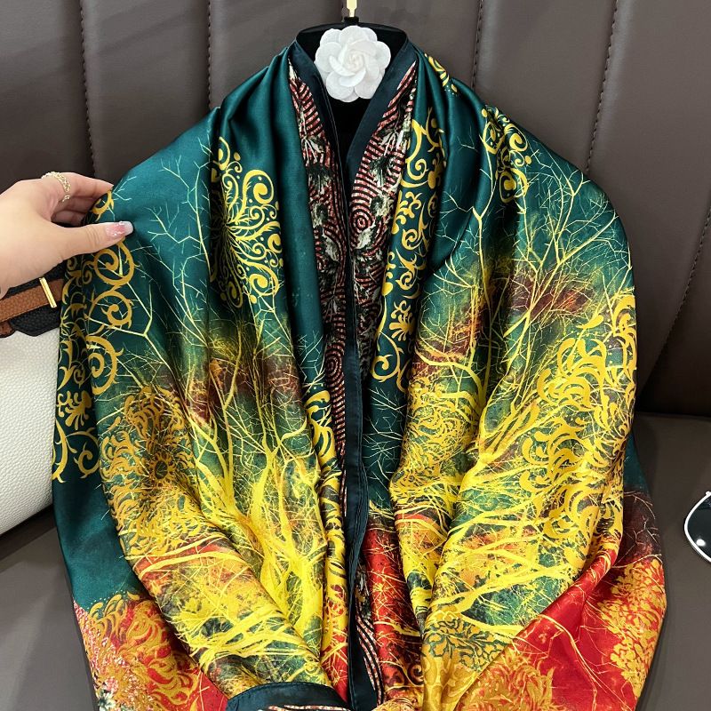 Ethnic style simulation silk scarf scarf, women's spring and autumn shawl, fashionable and versatile, summer large size, winter long style