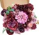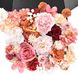 Size: 38pcs colorful flowers include 21pcs large flowers head from 2.75-4.13 inch and 17pcs small flowers and greenery. What you can get the various combination of PURPLE flower: Rosex3, lilyx1, bulbous chrysanthemumx1, peonyx1. BLUE flower: Daisyx1, blue-purple small flowerx2, blue rosex1, camelliax1, hydrangeax1, crabapple daisyx1. GREEN: tea flower x1, suower x1, rose x1, poppy x1. ORANGE: small flowerx1, hydrangeax1, rosex2, bulbous daisyx1, orange berryx1. BURY flower: rose x1, bulbous chrysanthemum x1, poppy x1, hydrangea x1, frangipani x1, peony x1. Accessory: small daisy x2, small eucalyptus leaves x2, succulent simulation plant x3, acacia beanx2.