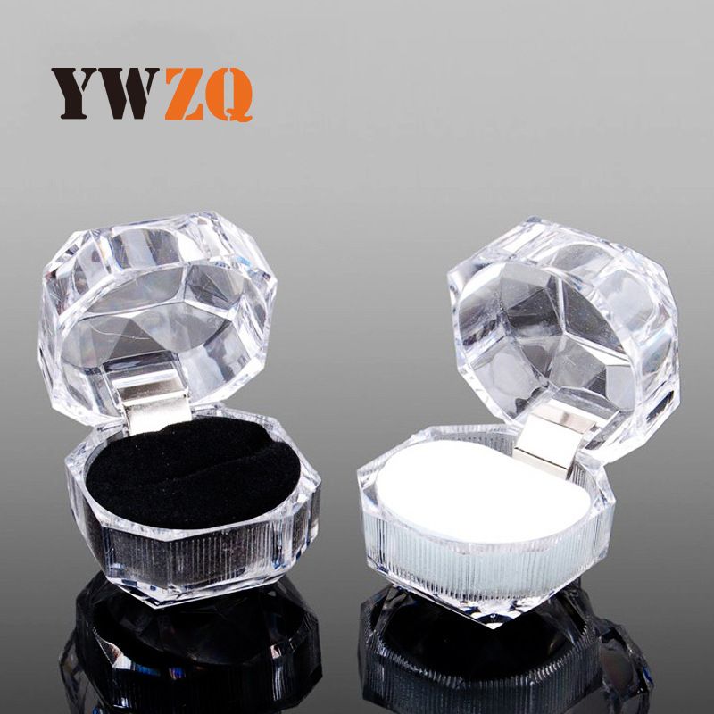 Caja de acero inoxidable para anillos, pendientes, tachuelas y joyas con forro de terciopelo transparente y recto.