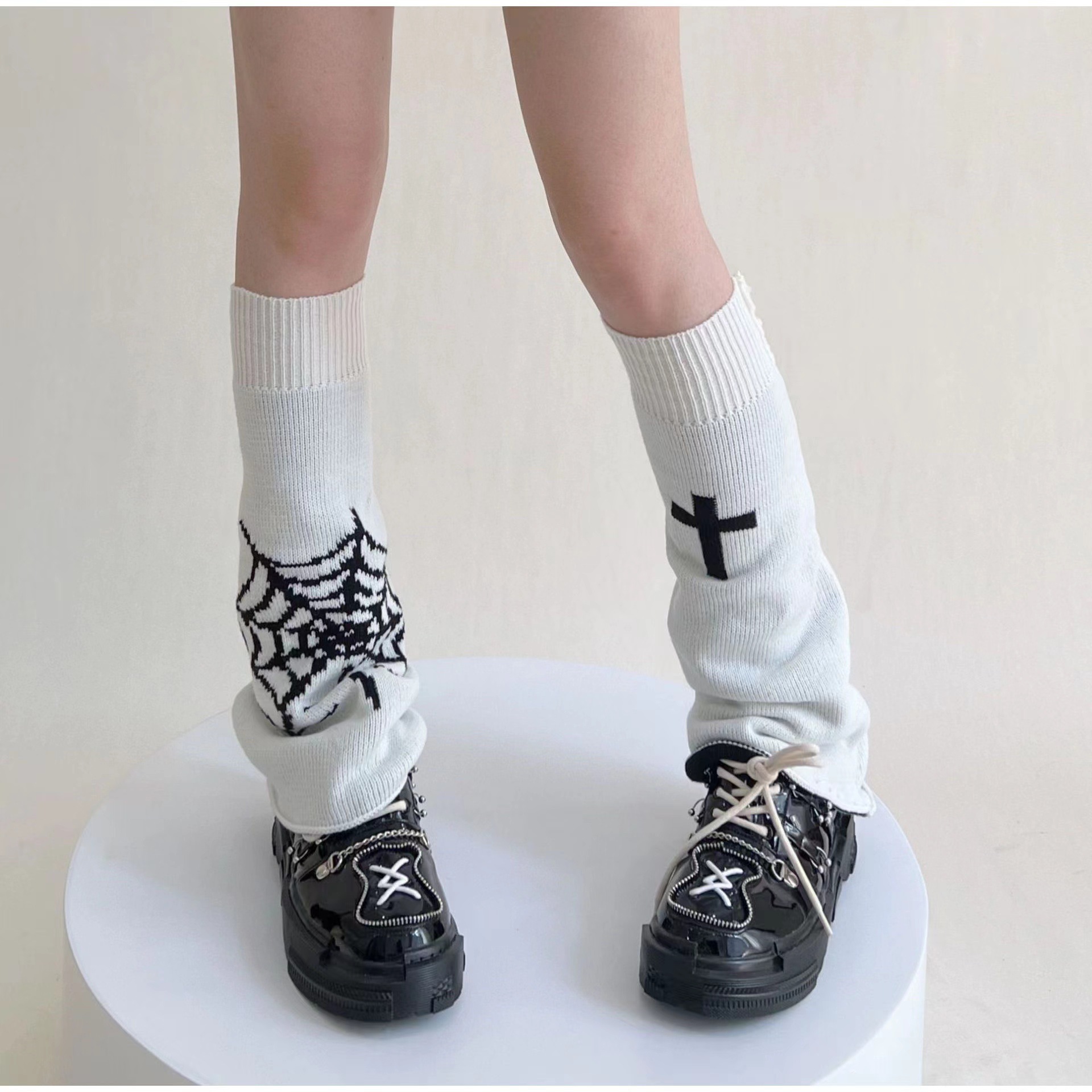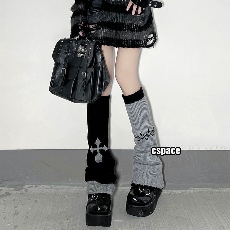 Calcetines anchos Lolita Love Cross Y2K para niñas con cubrepantorrillas, cálidos calcetines de punto acrílico para invierno