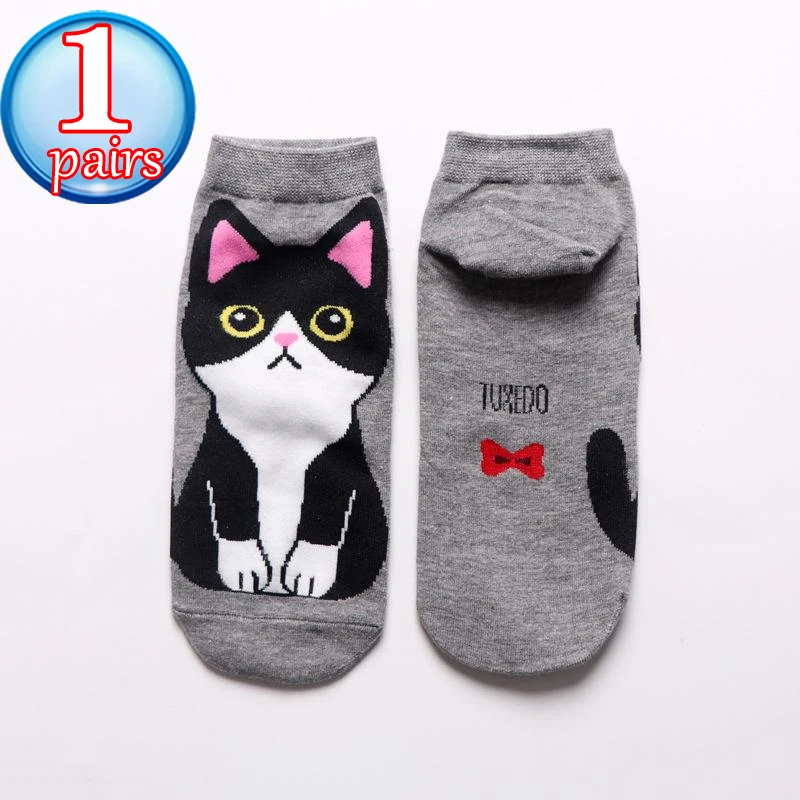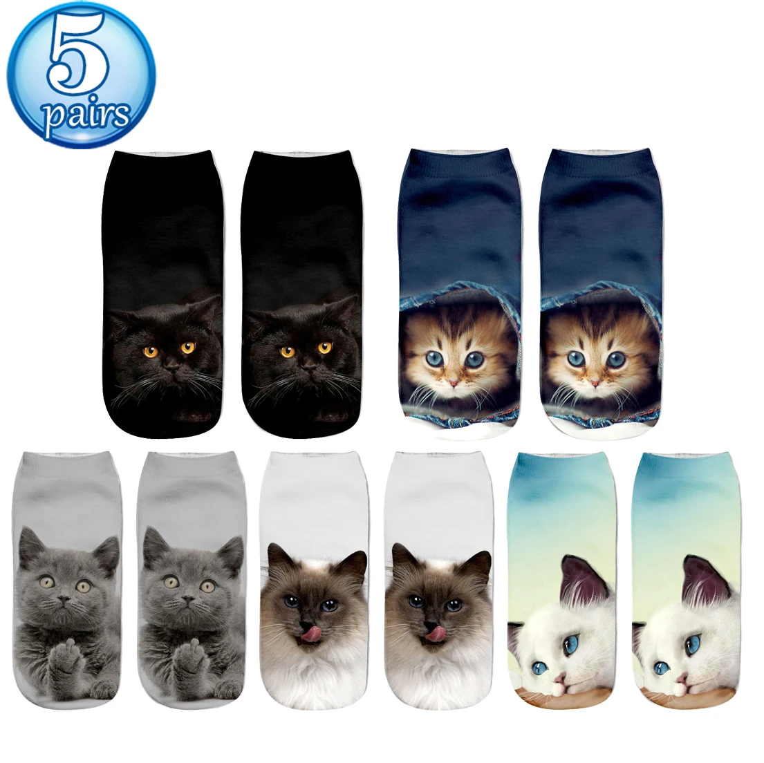 Calcetín corto de algodón con dibujos animados en 3D de gato, cachorro, perro, calcetines con estampado de animales Haruku Kawaii, tobilleras para chicas, calcetines transpirables informales