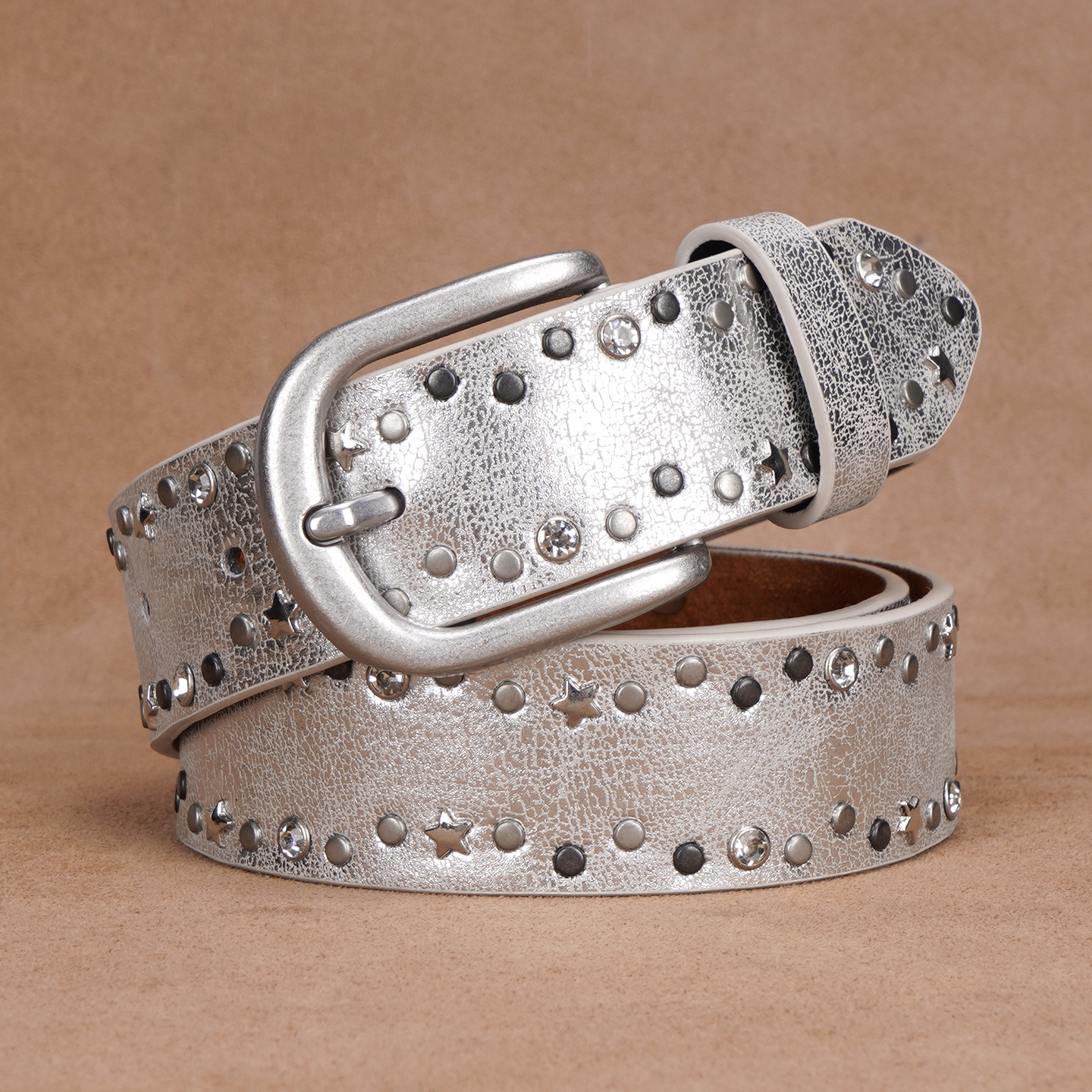 100% Cotton Women's Rivet Belt Wide Fashion European and American Decorative Jeans Punk Style Dia-Studded Belt Trendy Belt for Women