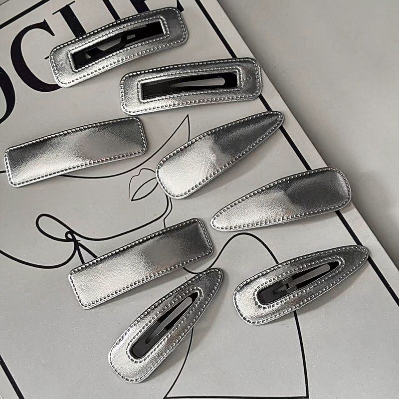 Punk Style Silver Leather Hair Clip for Women, Metallic Water Drop Bangs Clip, Simple Faux Leather BB Clip, Hairpin, Hair Accessory
