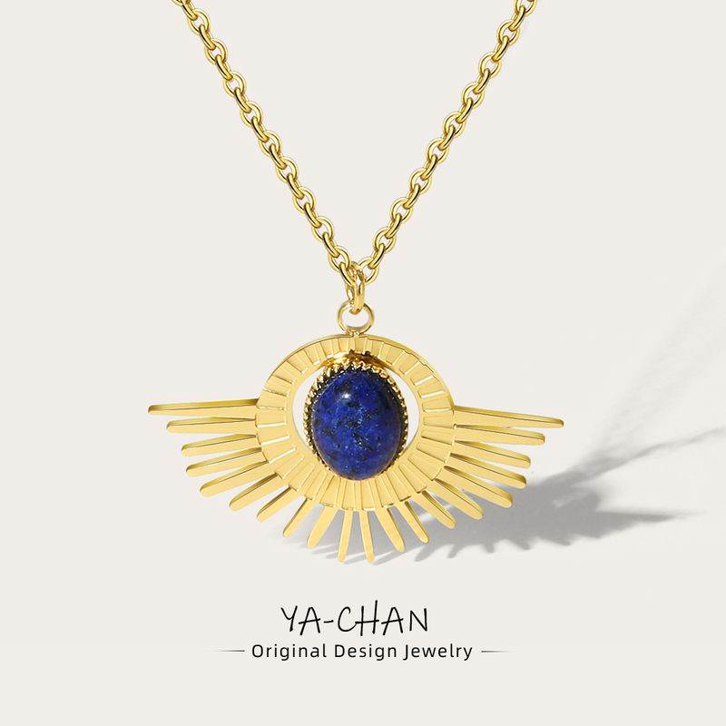 Collar colgante para mujer de acero inoxidable chapado en oro y piedra natural, joyería lujosa, moderna y estética.
