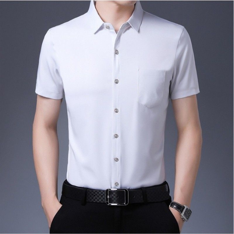Solid color shirt, men's non ironing, elastic, breathable, business and casual Korean version, slim fit, inch size, professional wear, white shirt, men's long sleeves