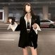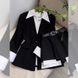 Chaqueta de dos piezas falsa, falda y pantalón con cinturón, chaqueta blanca y negra, falda y pantalón sencillos.