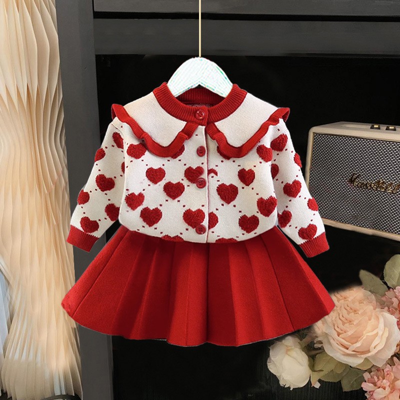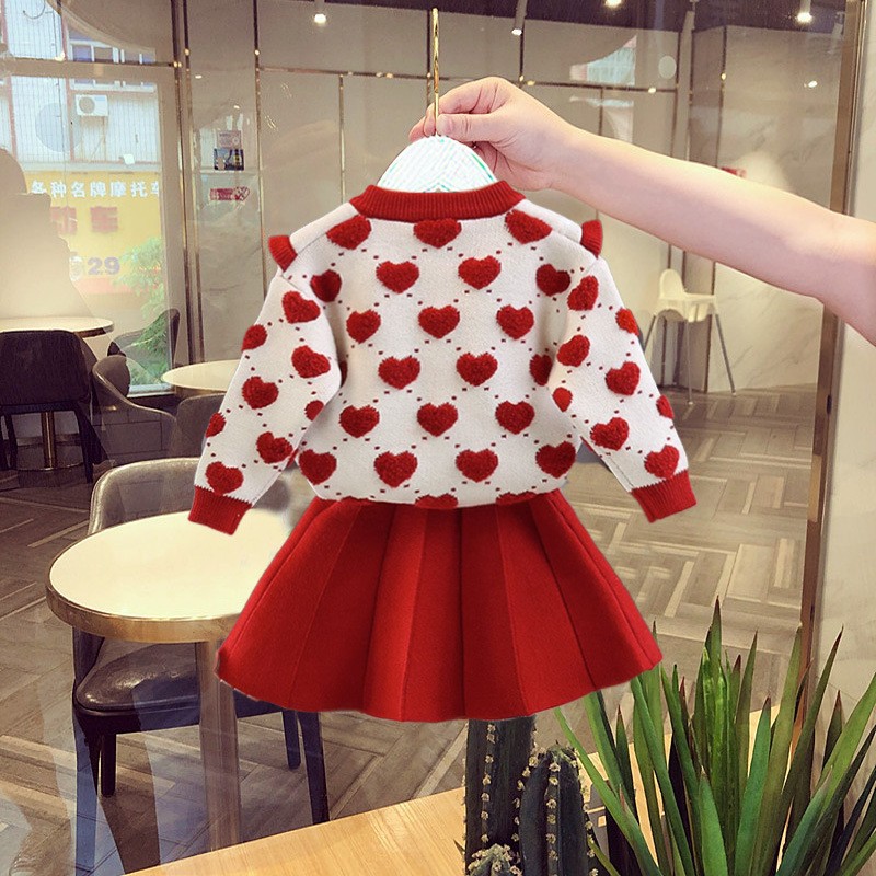 Conjunto de suéter y vestido de otoño/invierno para niña, ropa para bebés y niños pequeños de un año, moda de otoño, nuevo