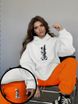 Conjunto de sudadera con capucha y pantalón deportivo oversize para mujer – Chándal estampado A20 (Blanco/Verde, Blanco/Marrón, Blanco/Naranja, S-XXL)