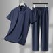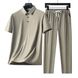 Conjunto informal de camiseta de manga corta y pantalón largo transpirable, sin costuras, con cuello vuelto, para hombre de mediana edad y jóvenes (CT 2025)