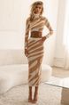 Conjunto de top corto elegante de cuello alto y falda de punto ajustada a rayas para mujer de otoño