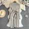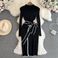Vestido de punto con cuello alto, manga larga y contraste de color para mujer, que adelgaza la cintura, largo medio y largo, con cordones hasta la cadera
