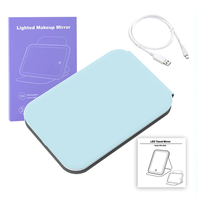 【Large but Portable】 Size:205*140mm,this LED Lighted Makeup Mirror is large enough for your hair and makeup,but with foldable, super light, single sided design that can be easily put into your backpack, suitcase, or locker,and more, perfect for travel, office, outdoor and even at home.