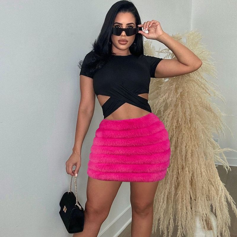 Falda midi de felpa acolchada con cremallera corta para mujer, otoño-invierno 2025