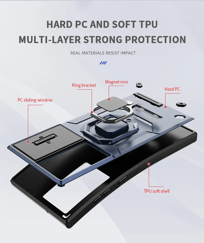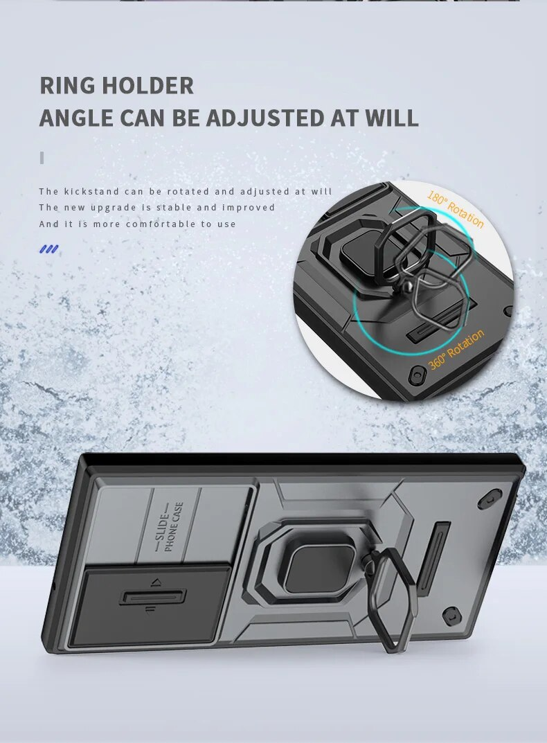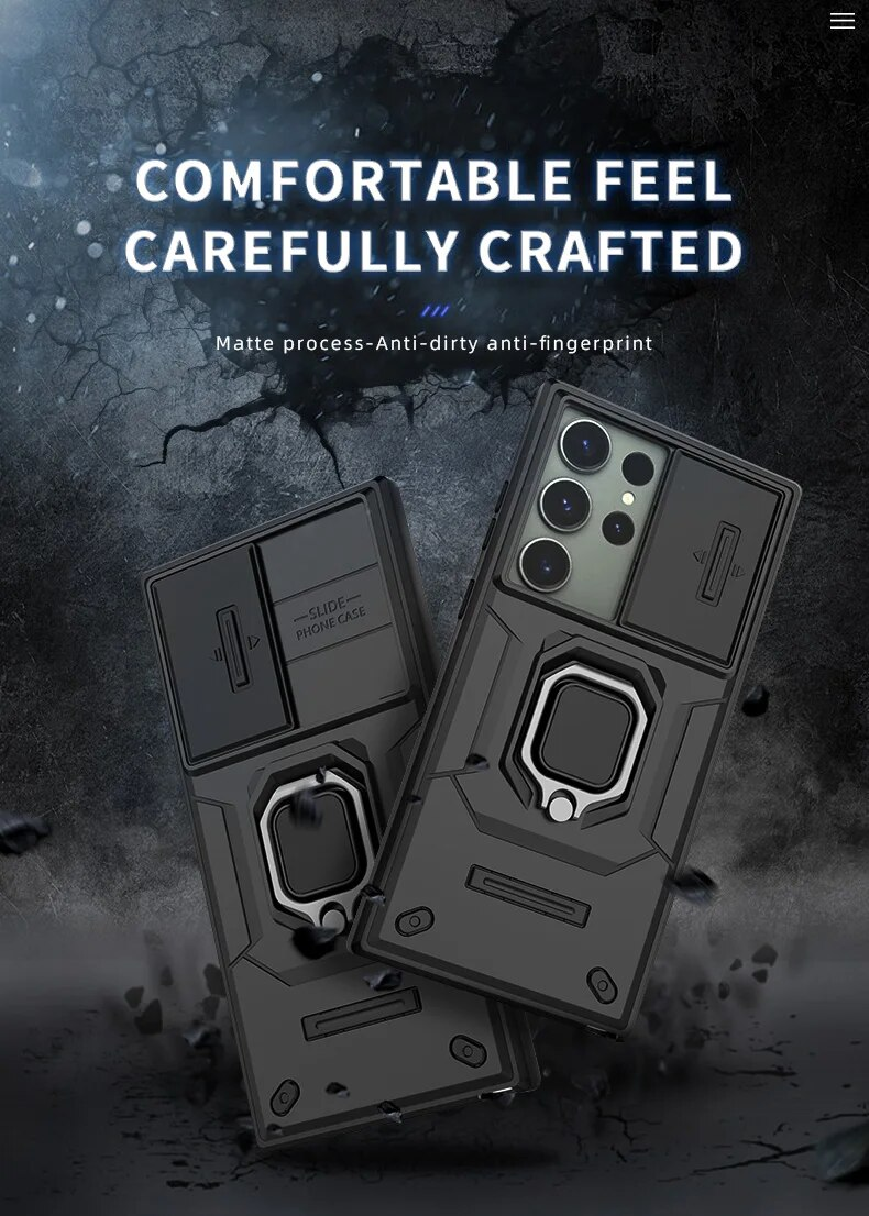 Funda de cámara con lente deslizante para Samsung Galaxy Ultra S23 Plus A04S A13 A14 A24 A34 A54 M34 soporte protector de armadura a prueba de golpes