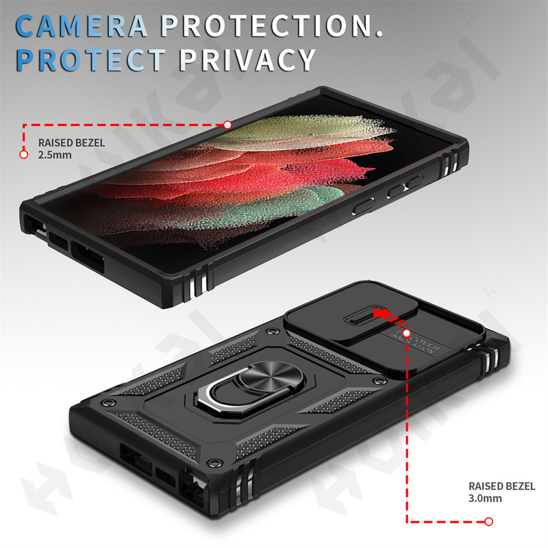Funda para Samsung Galaxy S23 S22 S21 Ultra FE Plus A53 A52 A13 A14 5G Cámara deslizante soporte giratorio de 360 grados pesado