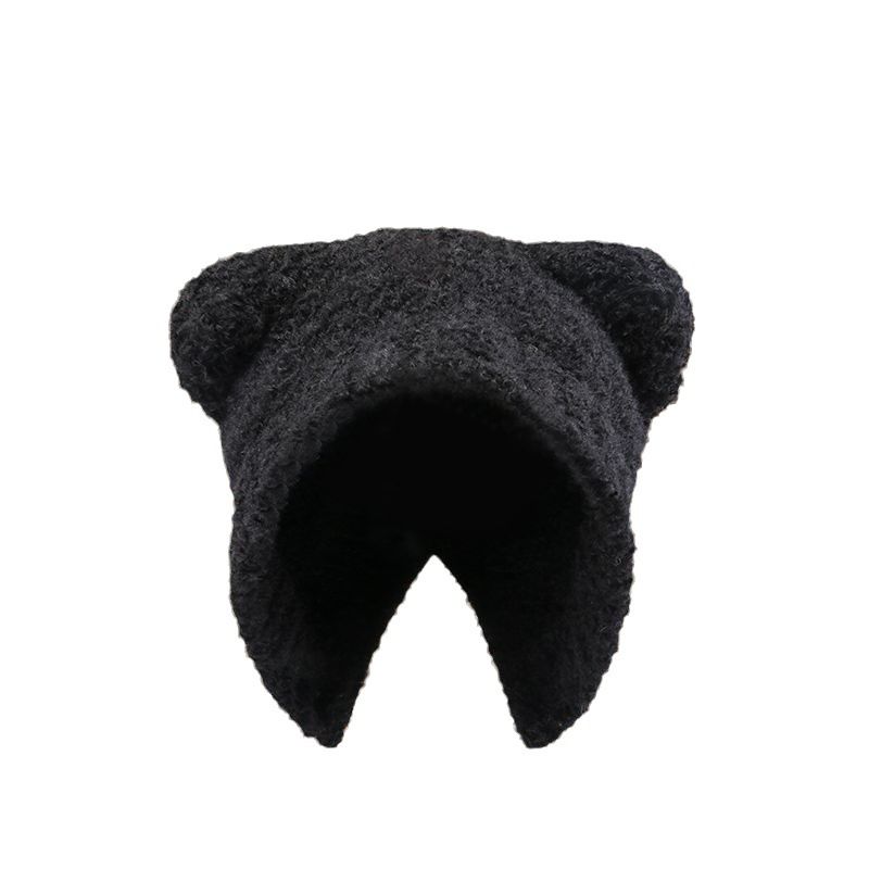 Cute Bear Hat for Women, Autumn and Winter New Versatile Warm Knitted Hat 2023, Gray Ear Protection Knit Hat
