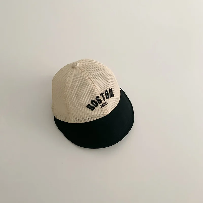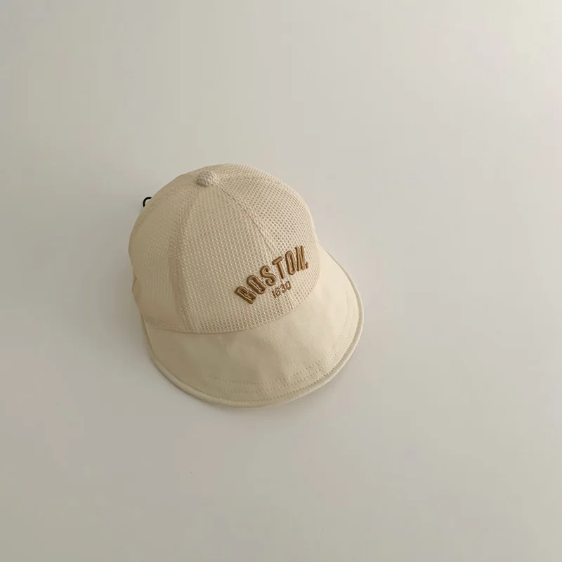 Sombrero de sol de verano para bebé, gorra de malla transpirable de ala grande para niños, visera ajustable para exteriores, letras sólidas para niño y niña