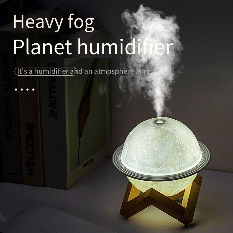 Humidificador de aire con luz ambiental y planeta, con enchufe USB directo para el hogar y el coche, gran volumen de niebla.