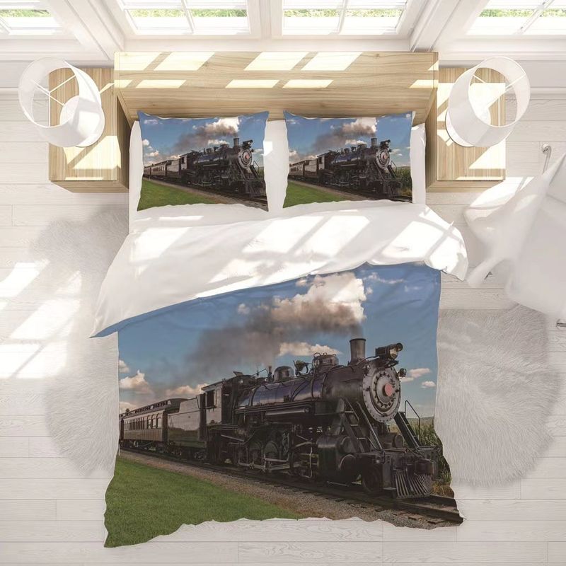 Customized 3-piece/4-piece 3D digital printed children's bedding set for locomotive bed