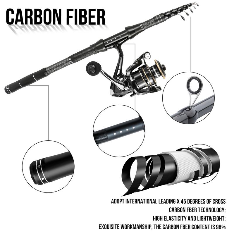 Juego de equipo de pesca, señuelo de carbono largo, carrete giratorio telescópico de viaje portátil, caña de pescar para mar, caja de cebo