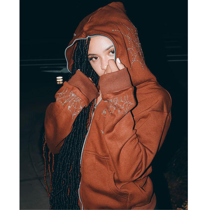 Cárdigan con capucha y cremallera completa con estampado de telaraña y letras, sudadera holgada de marca de moda para hombres y mujeres