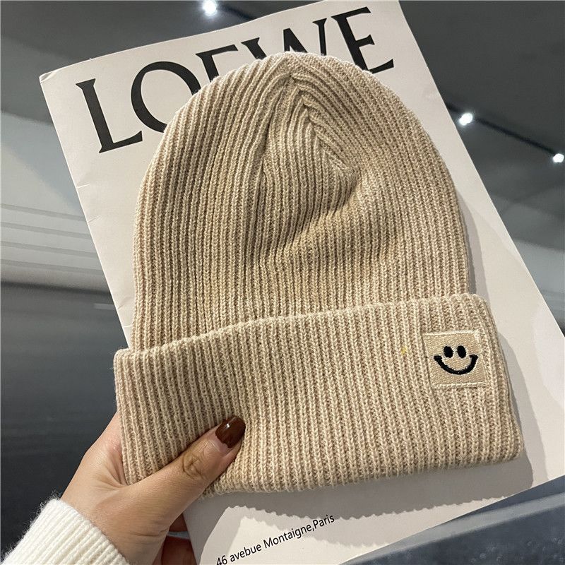 【 Quick Refund 】 Knitted hat, smiling face, woolen hat, cute autumn and winter trend, versatile ear protection, black insulation, male