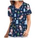 New Style Nurse Outfit Christmas Print Shirt V-neck Short Sleeve Base T-shirt Women's Clothing
