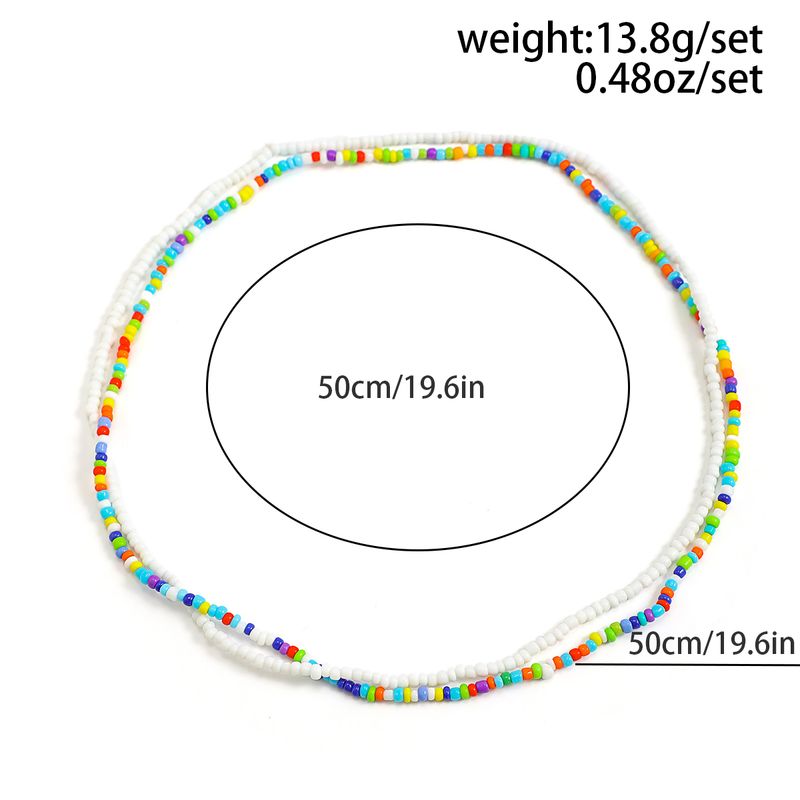 KunJoe 2Pcs/Set Bohemia Multi-layer Color Rice Beaded Choker Necklace for Men Women Hand-Making Short Chain Jewelry 2023