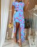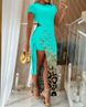 Vestido corto con cordones y abertura larga lateral larga y manga corta para mujer, dos vestidos estampados