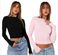 Conjunto de camiseta informal de manga larga para mujer: camiseta básica de cuello redondo y corte entallado (paquete de 2) - Mezcla de poliéster y elastano suave para mayor comodidad diaria