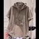 Camisa informal de manga corta con capucha para hombre, estilo universitario, transpirable y ligera, corte holgado, disponible en caqui y negro.