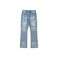 Ropa para hombre: Vaqueros lavados en azul hielo con ondas de agua y bigotes de gato desordenados, pantalones holgados.