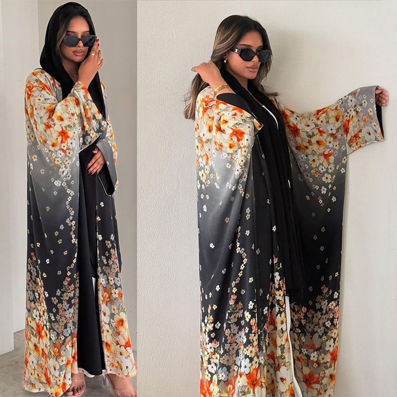 MQ203 Abaya musulmana conservadora estampada, ropa informal para mujer, cárdigan con mangas de murciélago, bata, caftán