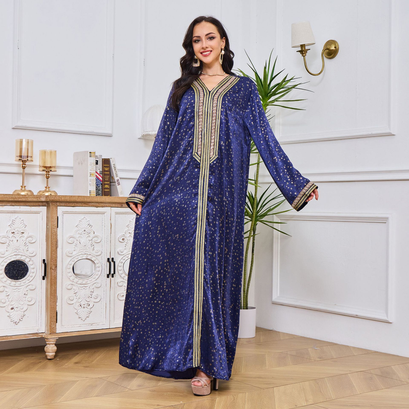 Mt039 Nuevo vestido musulmán de moda con encaje de diamantes, bata Abaya para mujer