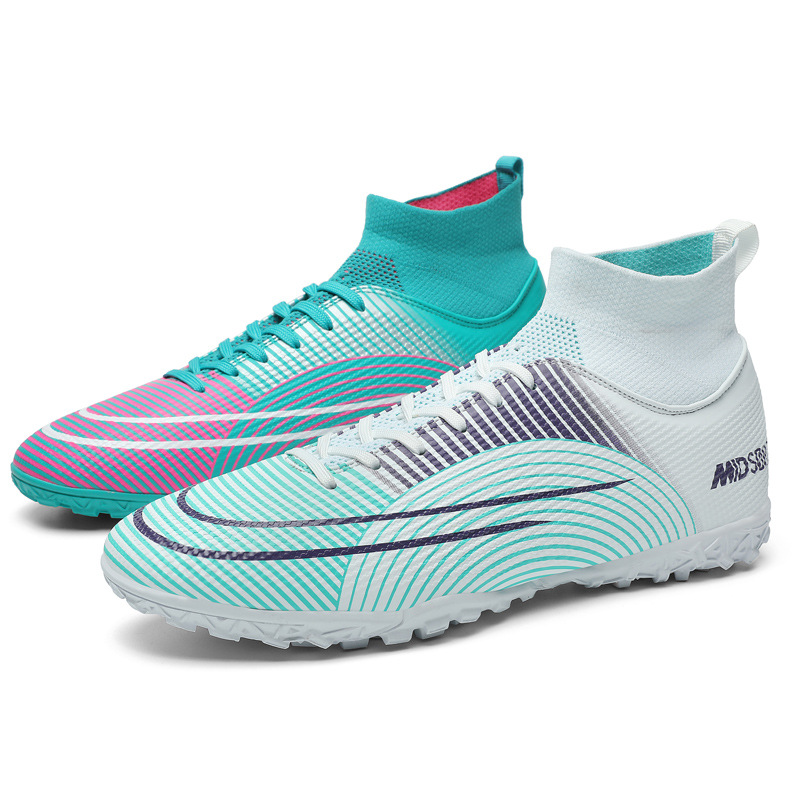 New high top Football boot for men and women, children's broken nails tf artificial lawn AG long nail leather foot game training shoes