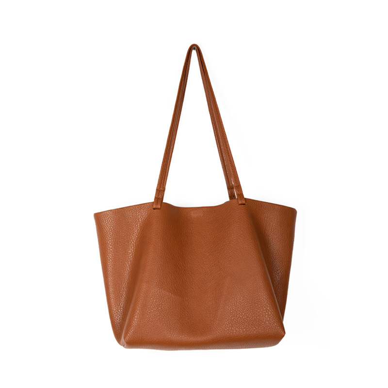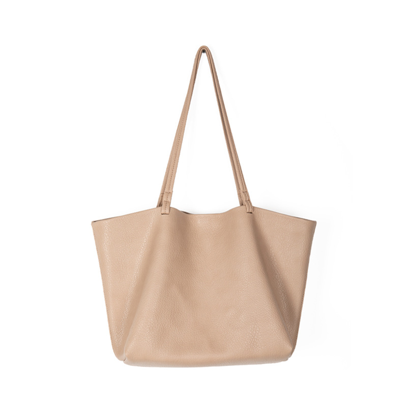 New Korean niche design lychee patterned soft leather shoulder bag, women's armpit bag, simple commuting large capacity tote bag