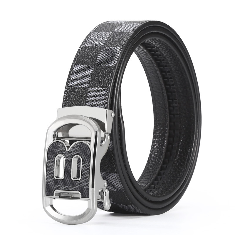 Cinturón nuevo y popular, cinturón de cuadrícula con letras de alta gama con hebilla automática para hombres, cinturón de traje informal de negocios para hombres, cinturón de pantalones